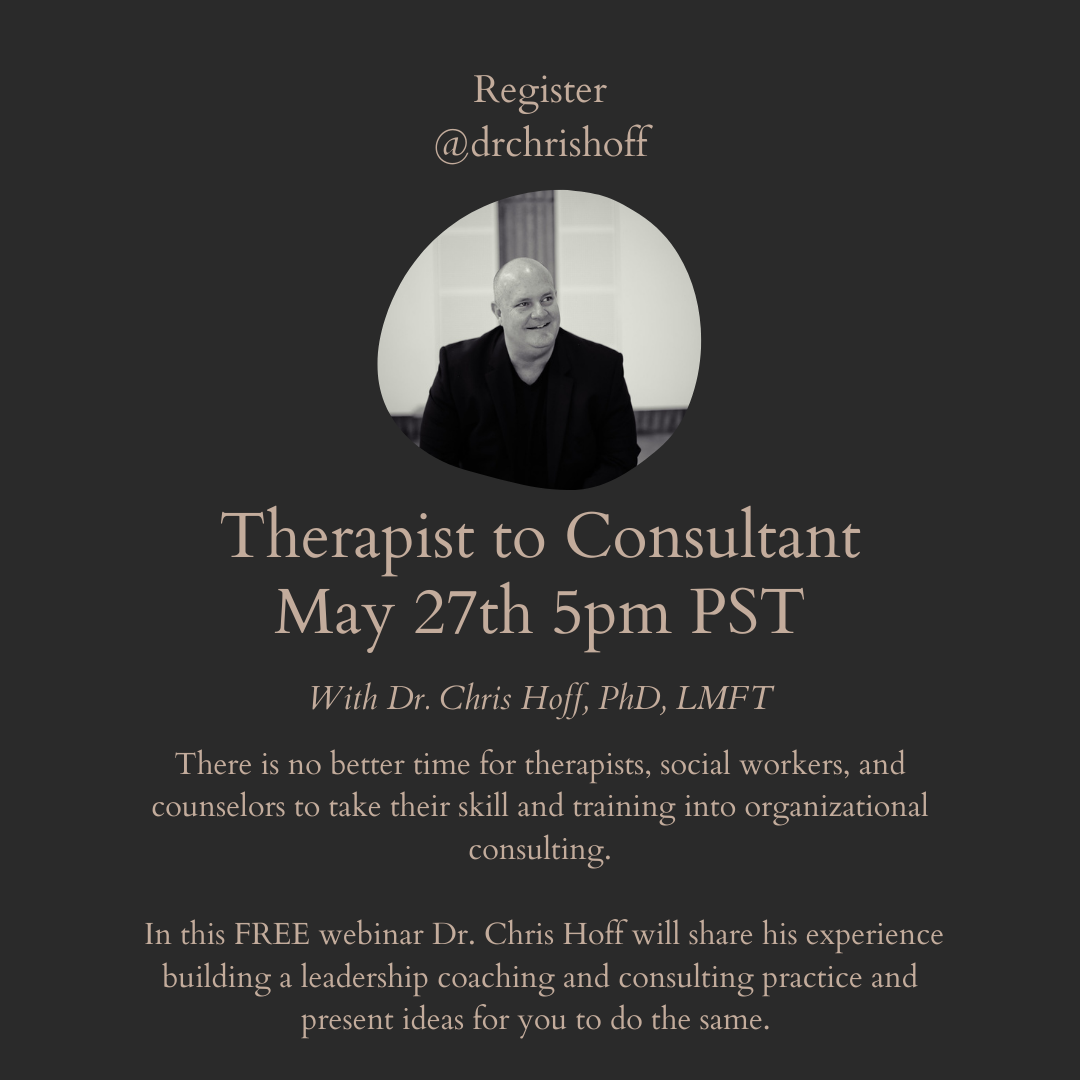 I will be doing a free live webinar for those that want to take their mental health skills into organizational systems. Register Here.